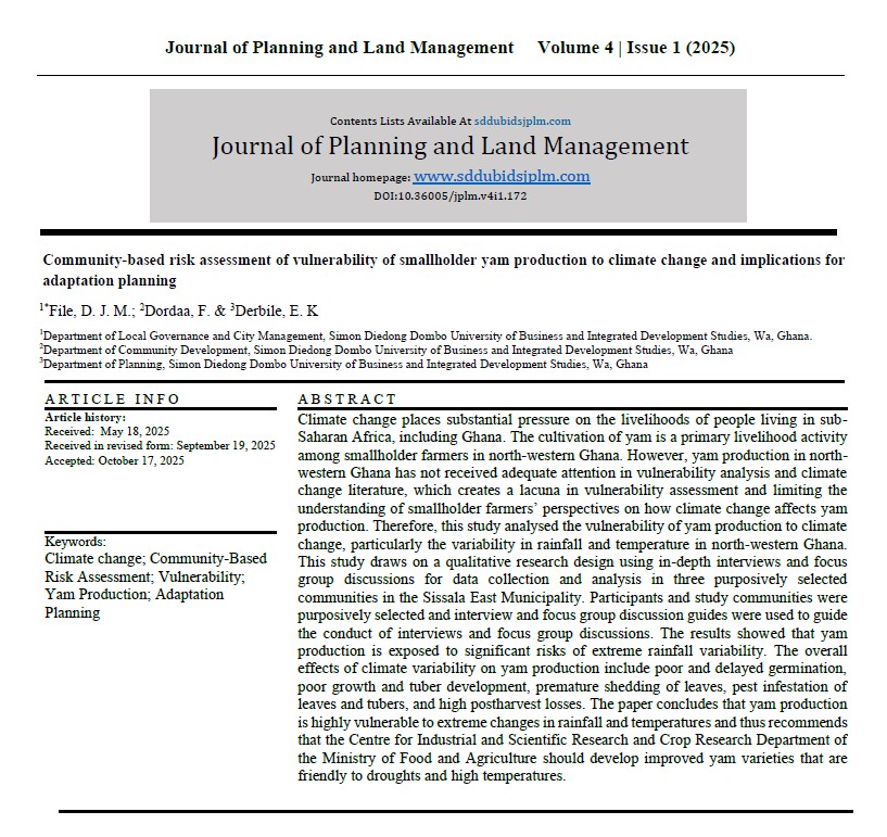 Climate change; Community-Based Risk Assessment; Vulnerability; Yam Production; Adaptation PlanningAbstract
